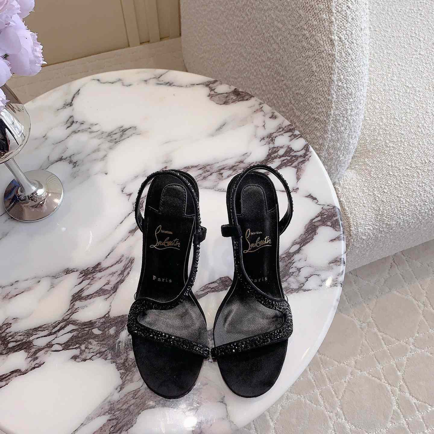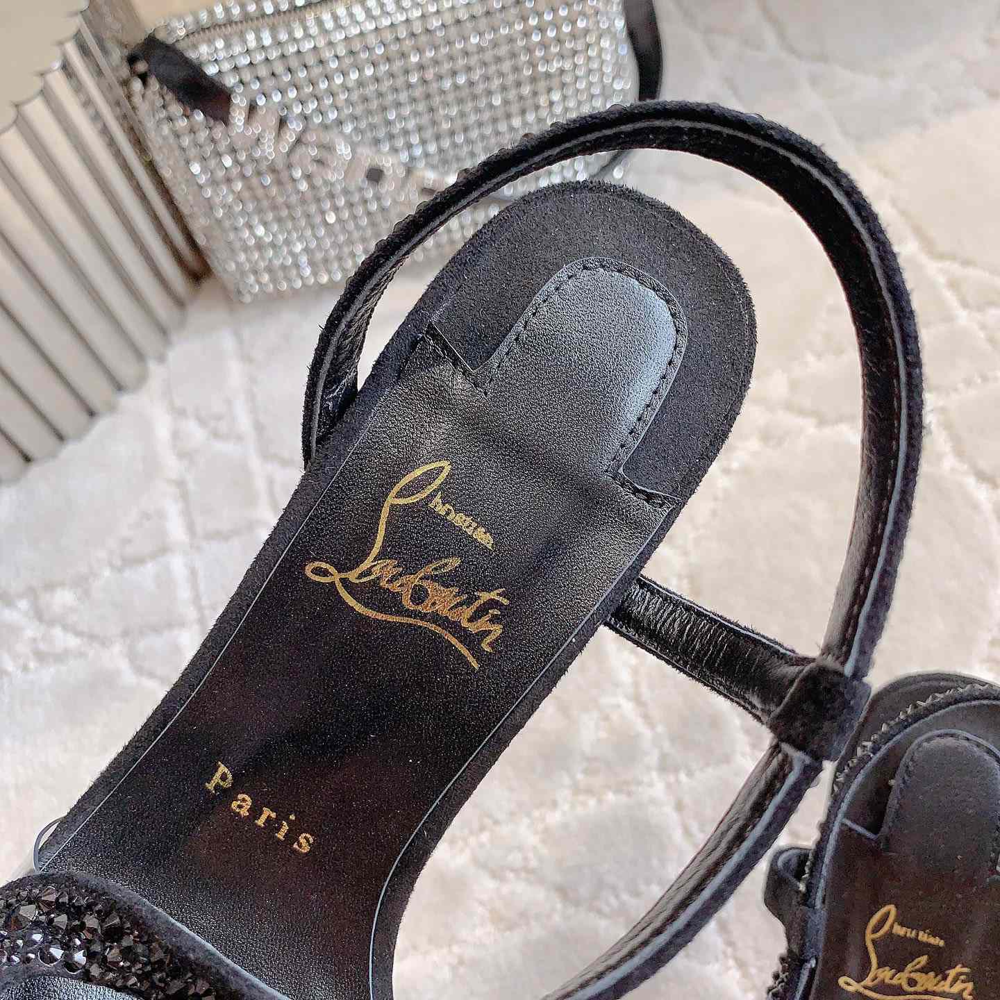 Christian Louboutin Black Suede Crystal Embellished Rosalie Sandals