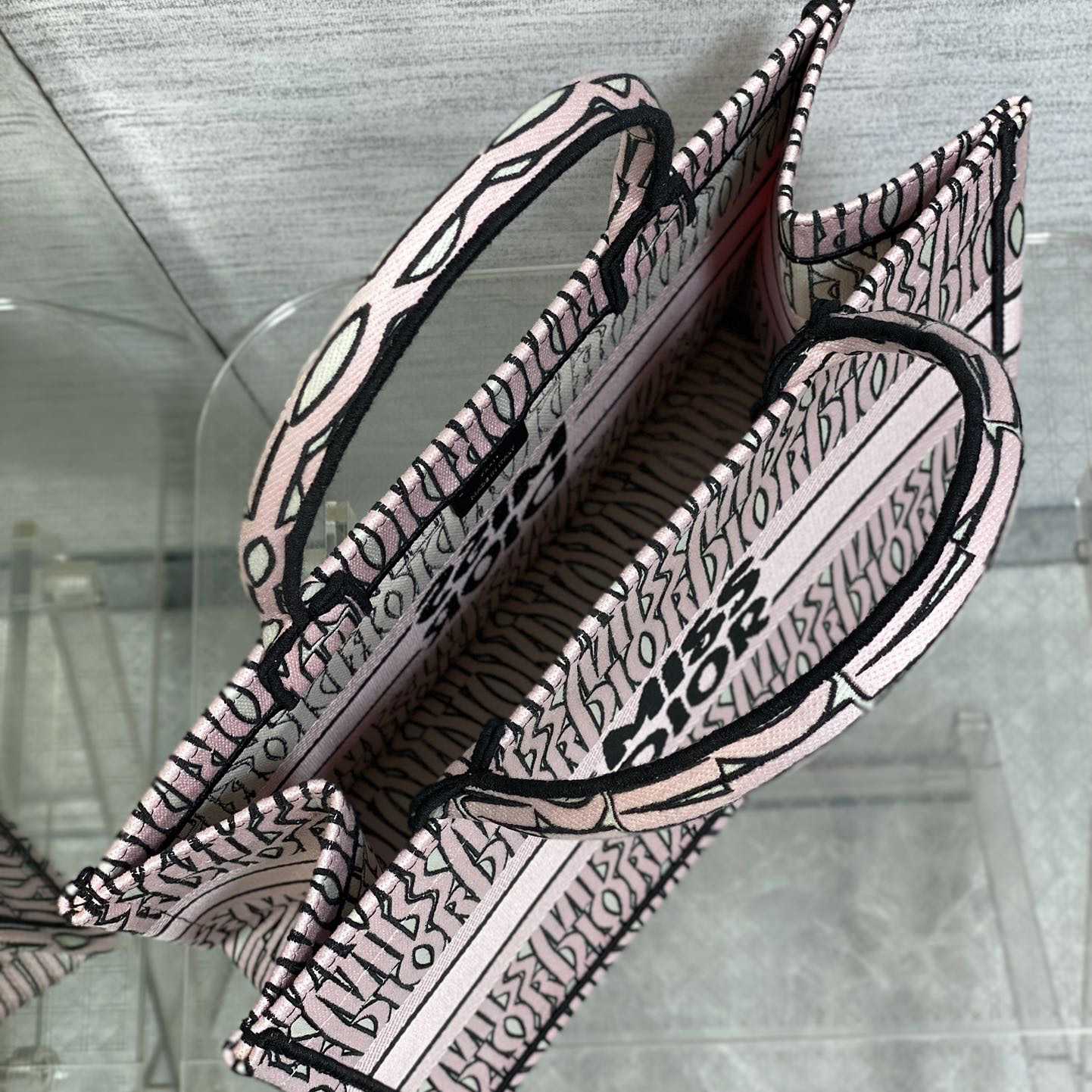 Introduced by Maria Grazia Chiuri, Creative Director of Christian Dior, the Dior Book Tote has become a staple of the Dior aesthetic. Designed to hold all the daily essentials, the pale pink style is fully embroidered with the collection's hallmark white Miss Dior Allover motif, inspired by the Marc Bohan for Dior archives in a modern take on the 1960s. Adorned with the Miss Dior Graffiti signature on the front, the medium tote exemplifies the House's savoir-faire and may be carried by hand or worn over the shoulder.
