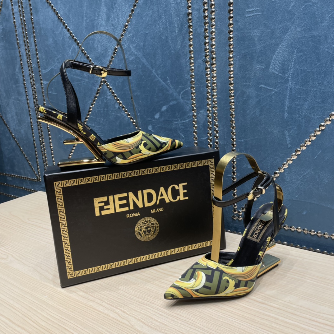 Fendi x Versace Fendace Printed Silk High-Heeled Slingbacks - DesignerGu