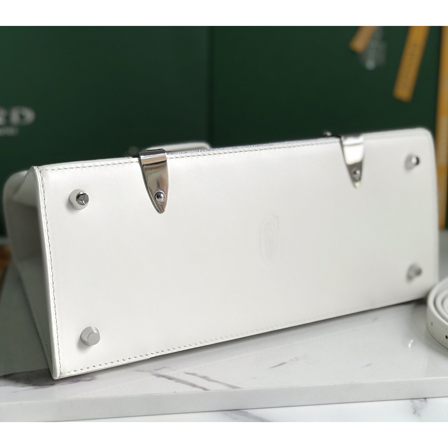 • The Saïgon bag is one of Maison Goyard’s emblematic pieces as it inherits all our trunk-making signature codes like the wood batons, leather corners and trunk rivets. In this structured PM format, the Saïgon bag can be worn with or without a strap for an elegant evening style.