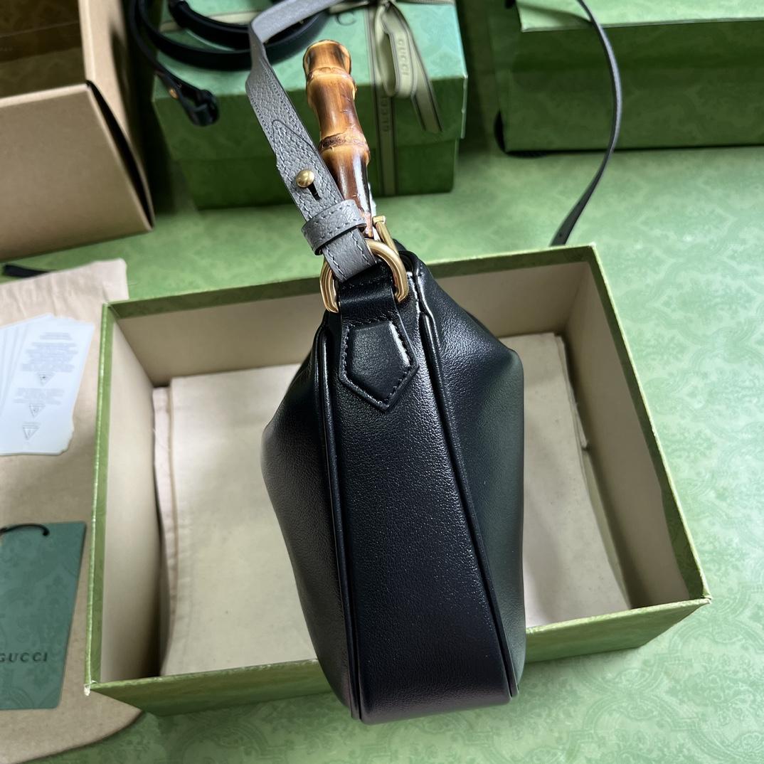 Combining recognizable elements of the House, the Gucci Diana is defined by its bamboo handles and Double G hardware. Crafted from black leather, the accessory is further accentuated by a contrasting grey leather shoulder strap.