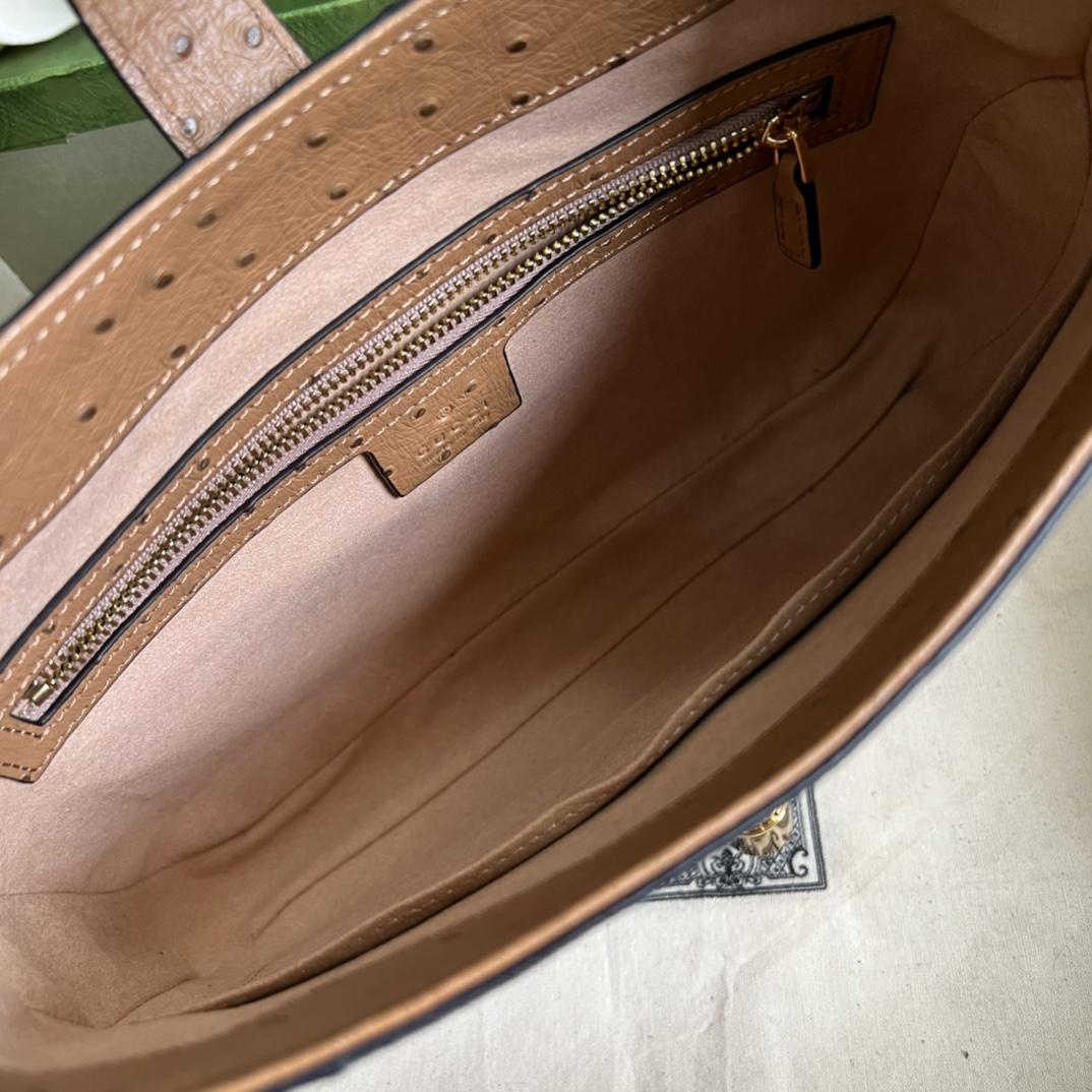Brought back to the forefront, the recognizable shape is enhanced with an additional, detachable shoulder strap. Attached to the bag with a buckle closure, the second strap adds a contemporary feel to the archival style, providing new ways to wear—from top handle, shoulder to cross body. The style is introduced in ostrich for the Epilogue collection. The Jackie 1961: available exclusively in Gucci stores and on Gucci.com