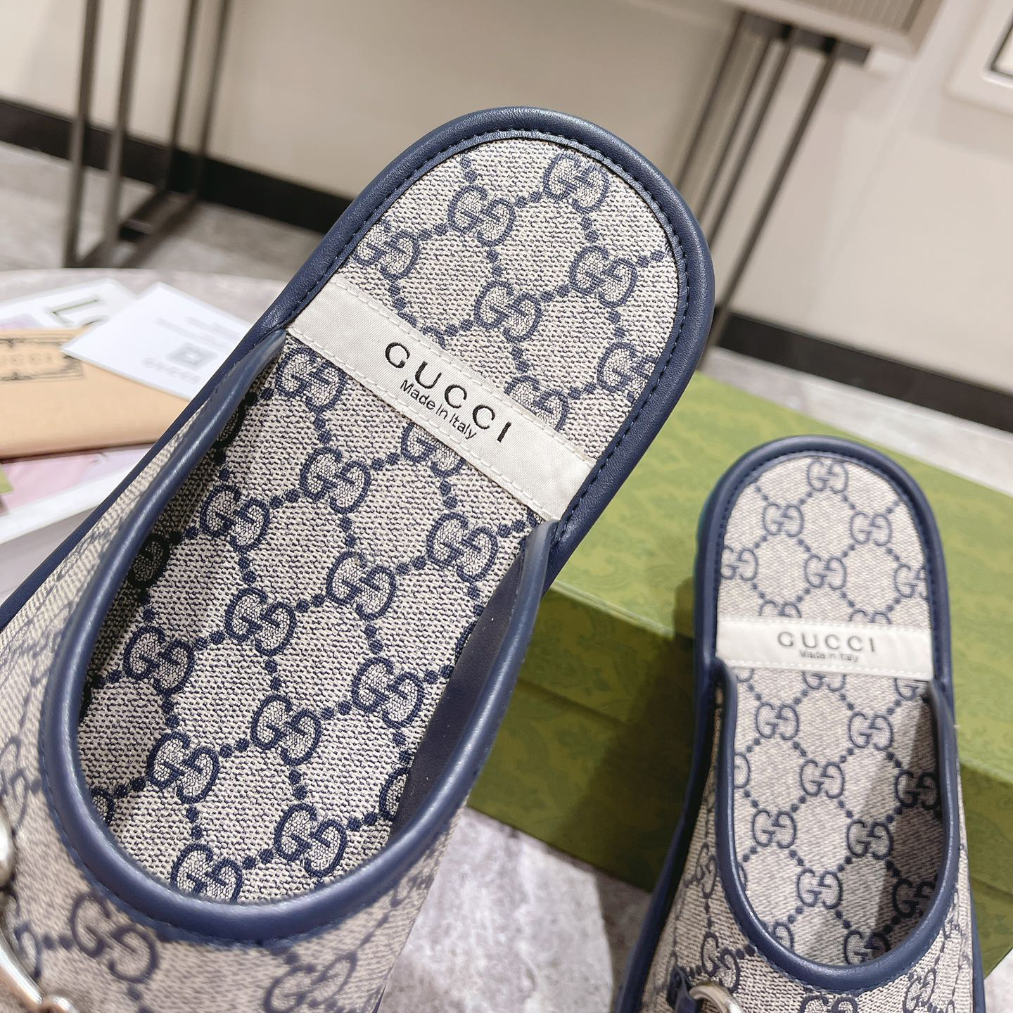 Mirroring the pattern's historic origins, the GG motif is introduced in a timeless mix of blue and beige for Gucci Love Parade. Coming to the fore of each collection decade after decade, the monogram design has become a hallmark of the House. Here, the palette defines this pair of slippers.