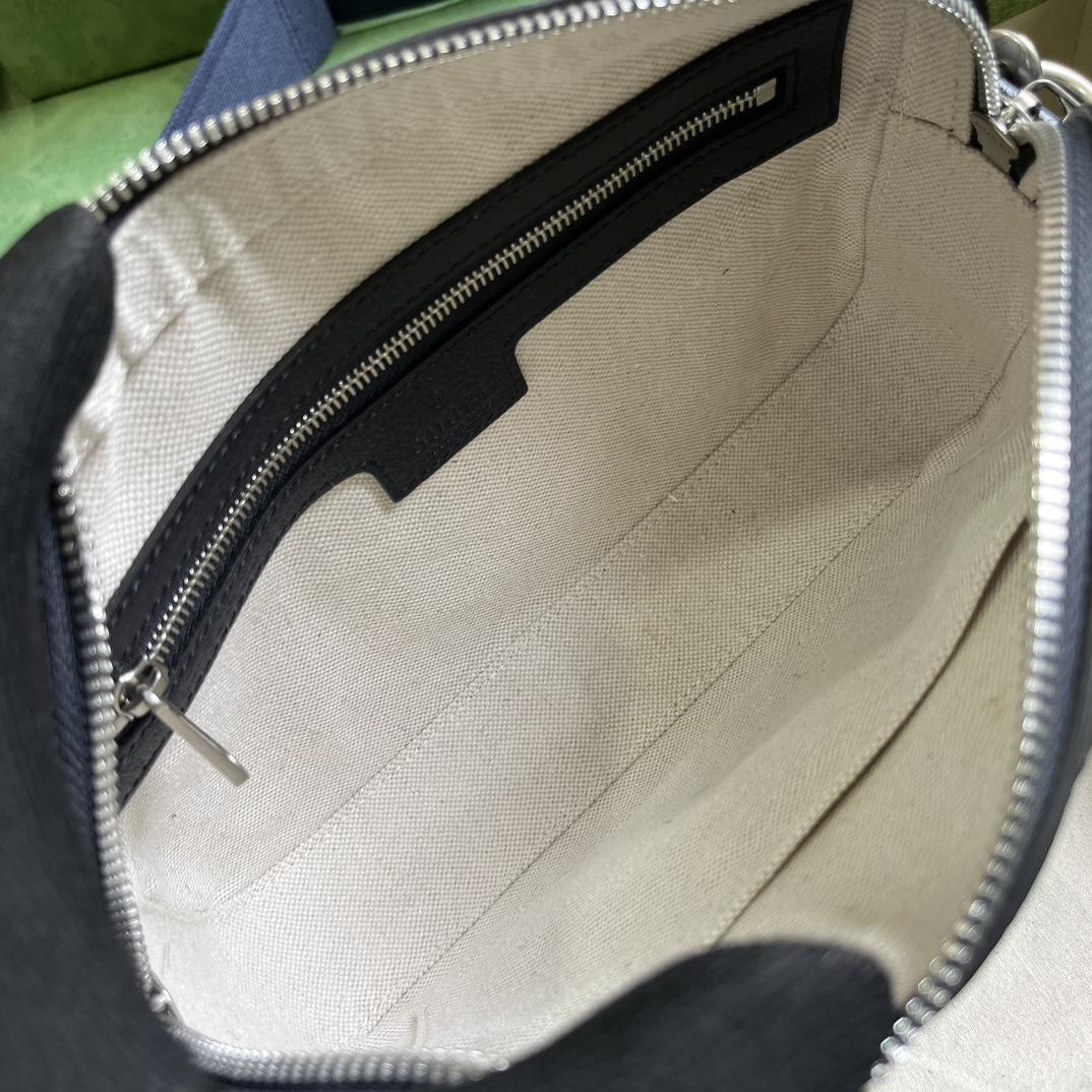 The Ophidia crossbody bags, totes, and top handle bags are presented in GG black denim for Cruise 2024, complete with silver-toned hardware for a touch of metallic contrast. This piece features the signature Double G with zip closure and one zip pocket inside for effortless organization.