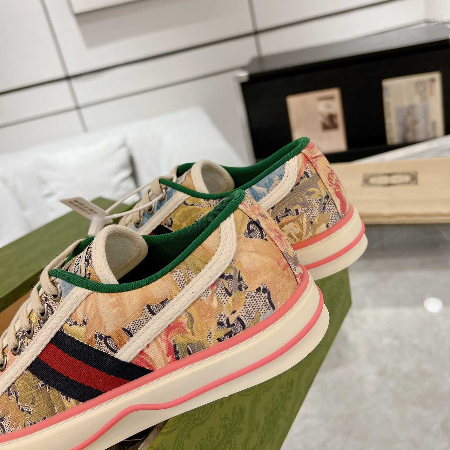 The historical Flora motif from the 1960s was designed by artist Vittorio Accornero. The floral pattern enriches this pair of sneakers with a romantic nature, appearing as a multicolored print atop the GG motif.