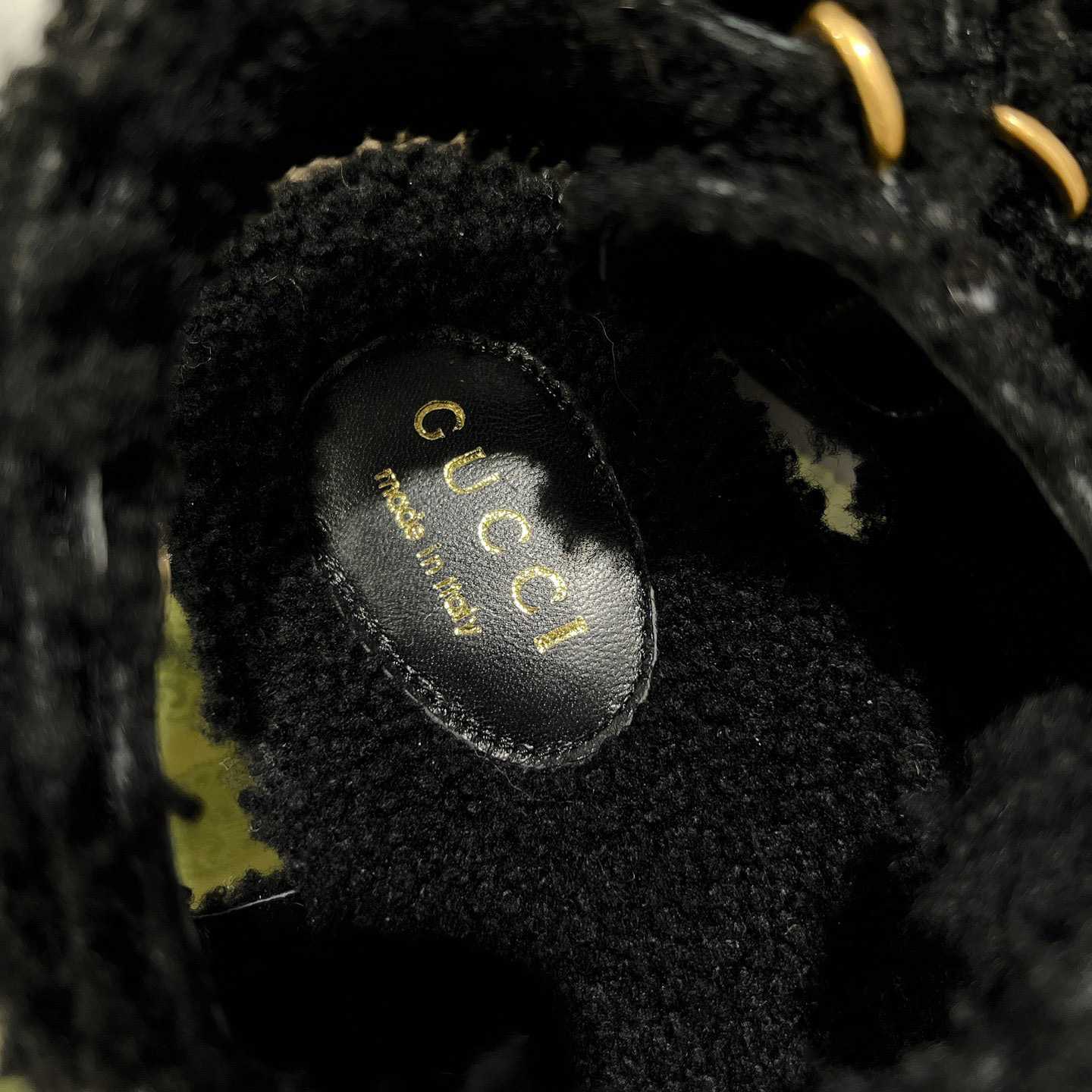 Hybrid designs enrich the Gucci narrative by bringing together surprising materials and styles. Playing with expectations, this pair of sandals is crafted from black merino wool in a design that recalls house slippers. The House's monogram adds a logo feel.