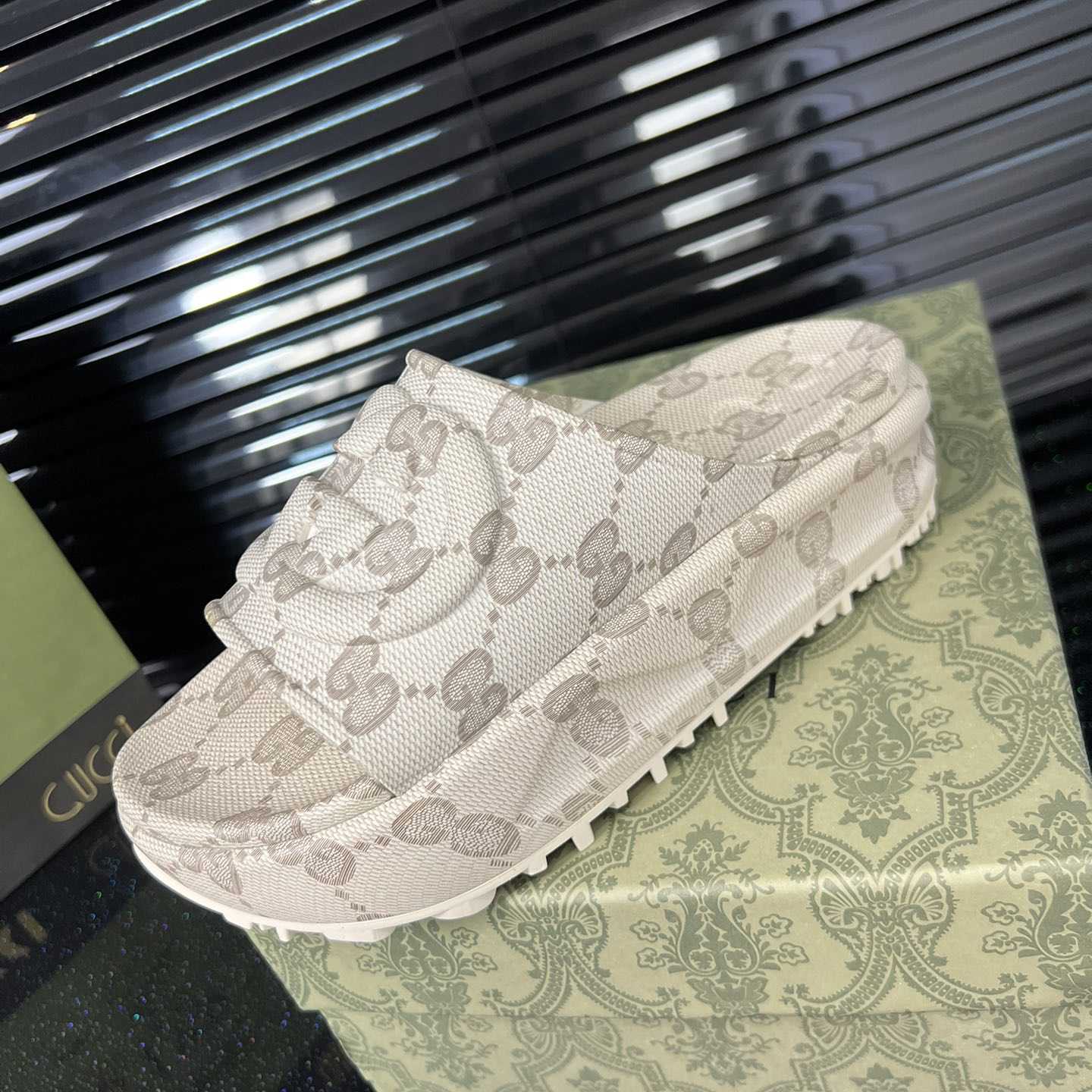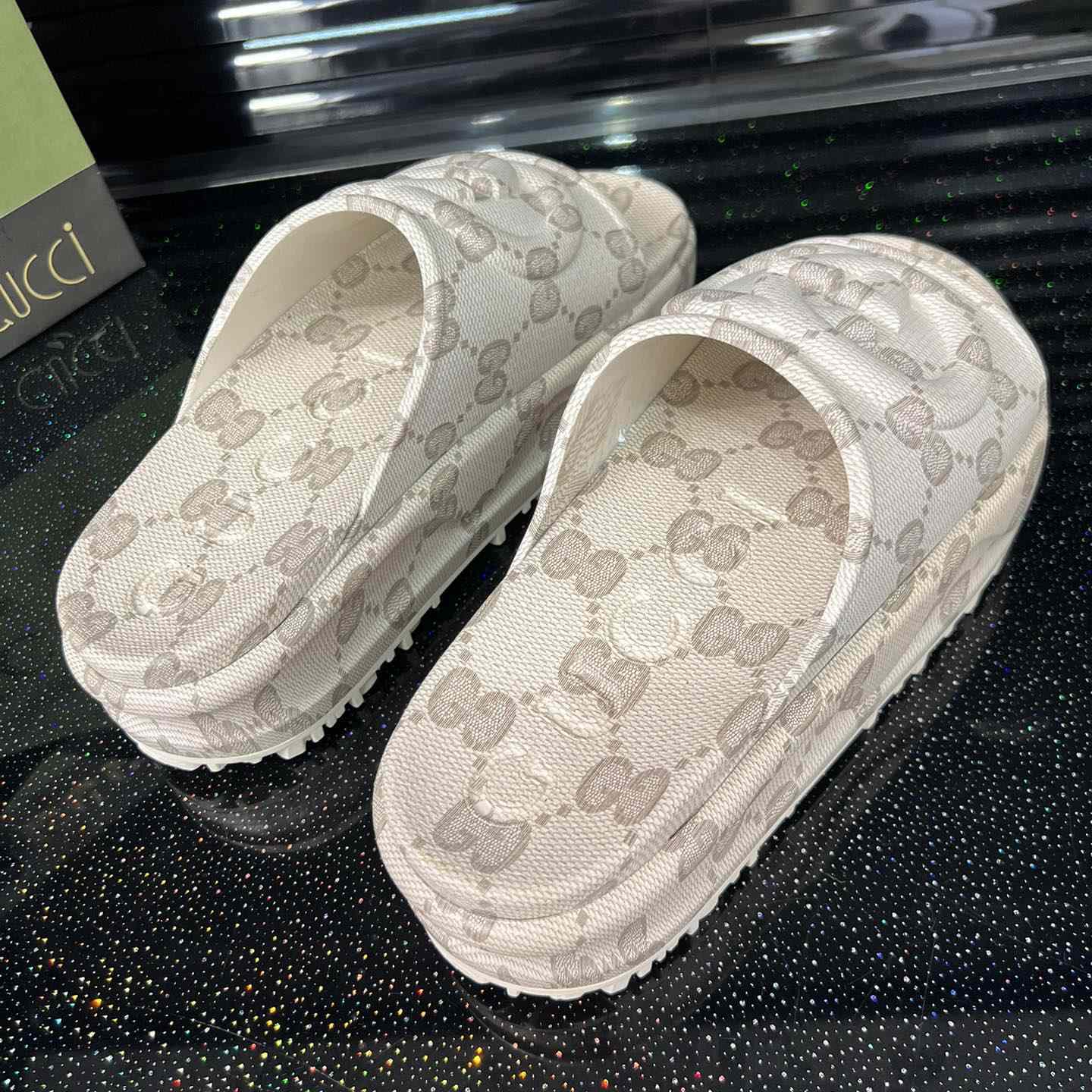 Intrinsically linked to the '90s, rubber adds a retro note to the latest collections. This pair of beige and ebony slide sandals accentuates the aesthetic with an embossed Interlocking G detail and chunky sole.