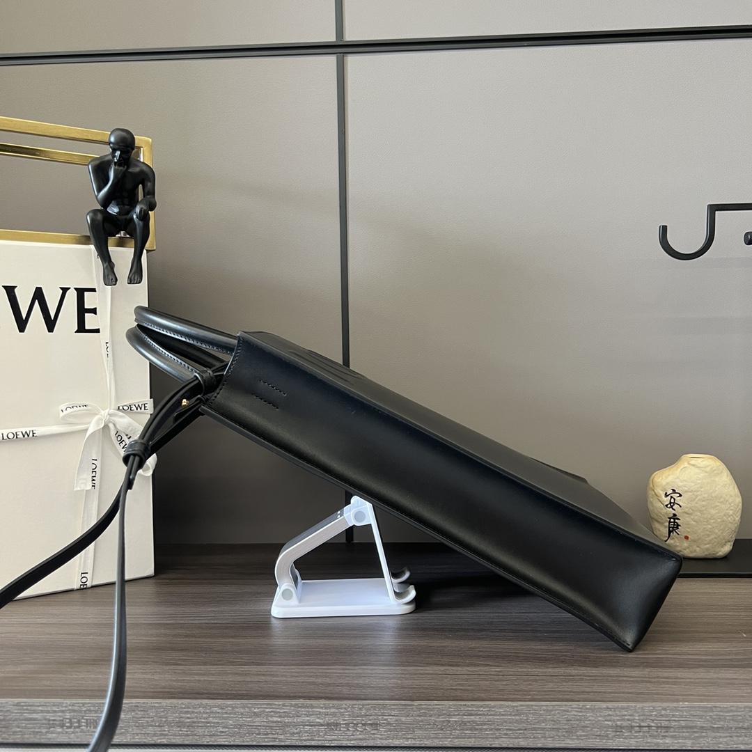 The LOEWE Standard Tote is a practical bag with an envelope construction on the base and can be carried by top handles or using the detachable shoulder strap. This version is crafted in sleek calfskin and has an debossed LOEWE logo across the front.