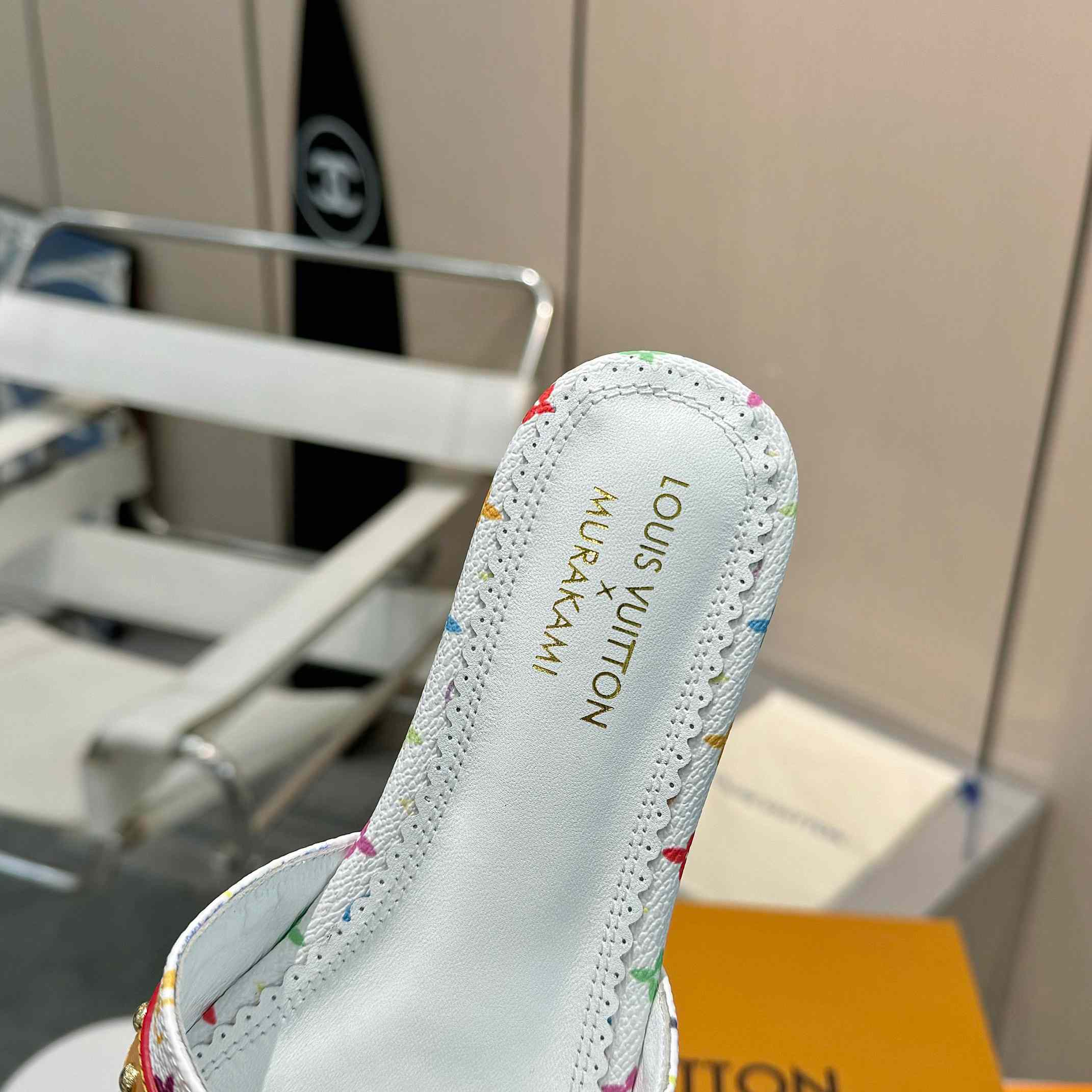 Chic and cheerful, the 6AM flat mule is signed all over with the iconic Monogram motif in upbeat rainbow tones as part of the re-edition of the Louis Vuitton x Murakami collection, which reimagines the House’s timeless signature with Japanese artist Takashi Murakami’s renowned vibrant aesthetic. The strap is detailed with studded bands of natural cowhide leather and trimmed with bows for a final flourish.