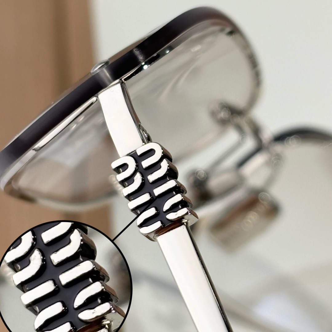 These sunglasses from the fashion show reinterpret classic sporty styles with a glamorous touch. The metal frame combines a curved design and playful mirrored lenses. The vertical Miu Miu logo decorates the ultra-thin temples.